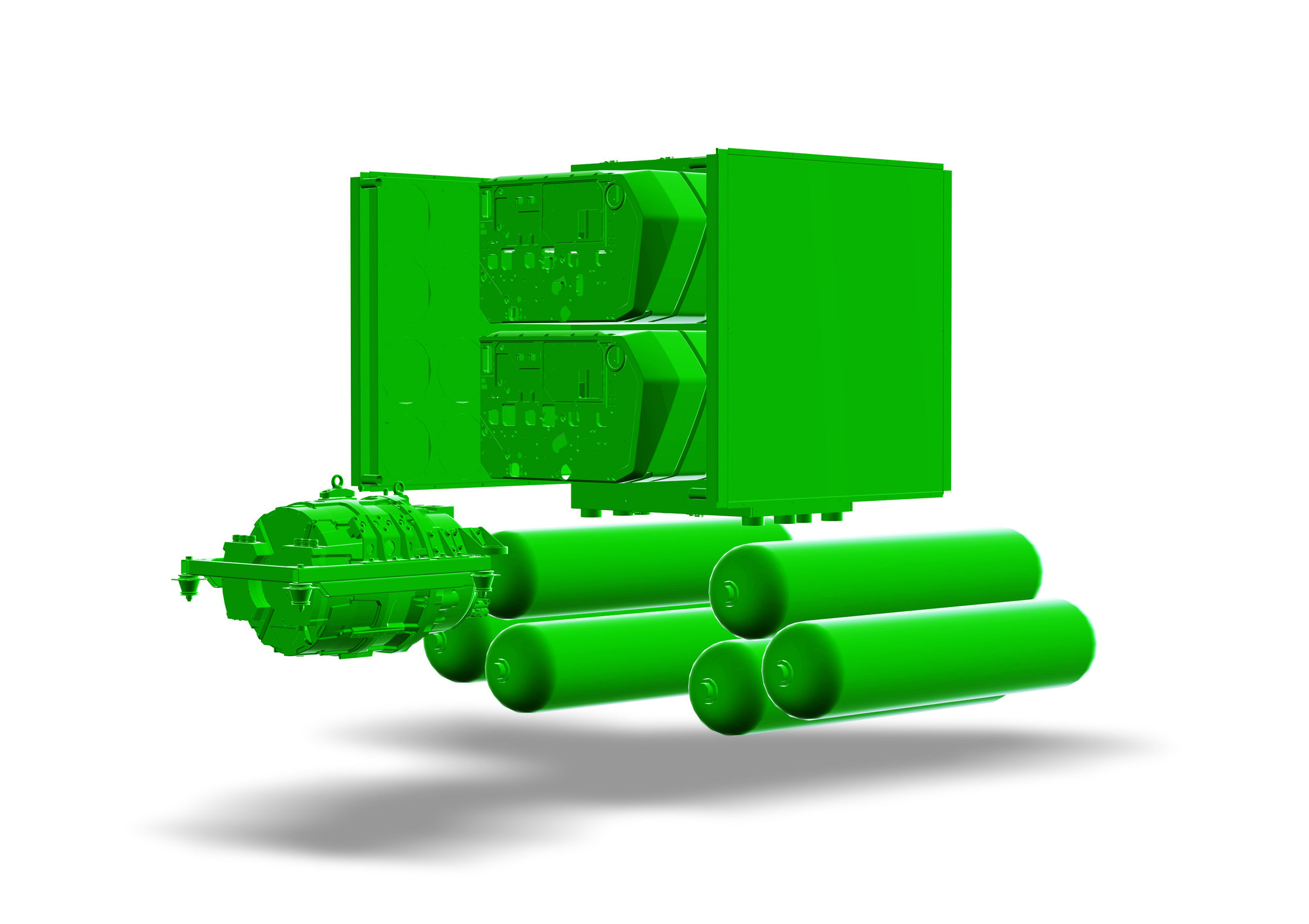 A key advantage is the clever placement of the traction electric motor in a "protected" zone above the backbone tube. This preserves the maximum rigidity of the entire chassis structure while allowing the system to be combined with a multi-speed transmission. Another major advantage is the extremely fast filling of hydrogen tanks, which minimizes downtime and increases operational efficiency.